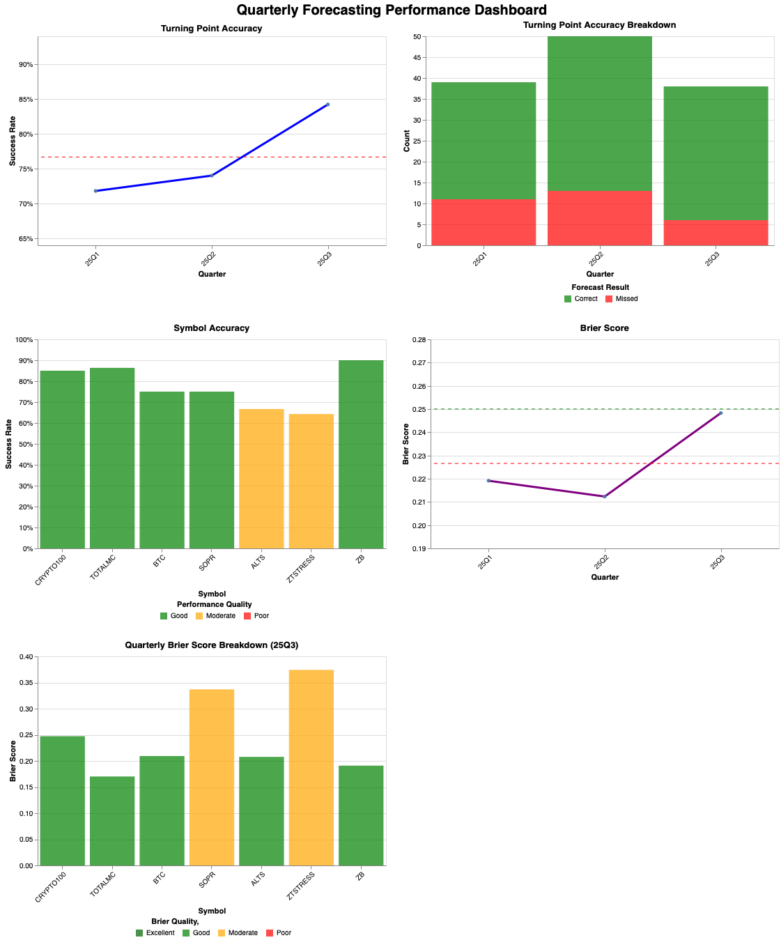 he crypto market has been dominating my coding projects. I’ve been creating frameworks to automate a significant portion of my data collection and calculations for my quarterly forecasting newsletter. It is, by far, the post that takes the most time for me to create, and any time saved here will pay dividends. In addition to the automations I’ve built, I’ve made a simple dashboard to complement my accuracy report, which I also publish. I’ve been creating public models for Bitcoin since early 2021. Out of 86 turns since then, so far, 67 have been validated, which puts my forecasting accuracy at over 75%. Below are the results of 2025 across the various models I made in the reports. This year, I added an extra metric (Brier score) to provide a more comprehensive review of my forecasting abilities. I include how likely the model is to capture turning points. This probability, combined with the actual results, will not only show how accurate I have been but also how well my predicted probabilities align with actual outcomes. The Brier score measures the accuracy of probabilistic predictions, so a lower score means my forecasts are both well-made and able to distinguish between likely and unlikely events. Lower scores suggest that if I think something is very unlikely, it is more likely that my assessment will be accurate. Ideally, I maintain a score under 0.25 on the Brier scores.