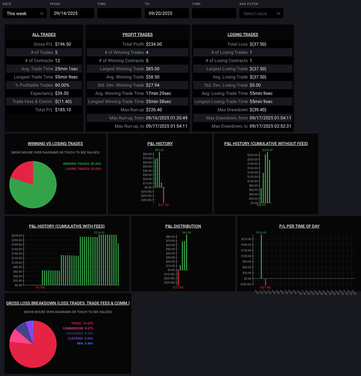 Only traded briefly on Monday and Tuesday. I sat in for the market open on Friday, but ended up not doing anything and packed up the computer early.